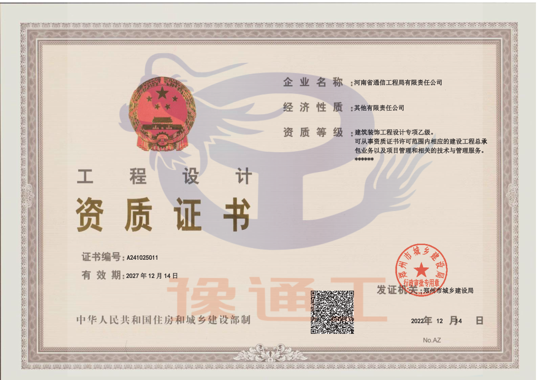 電子通信廣電行業(yè)(有線通信、無線通信)專業(yè)設計甲級