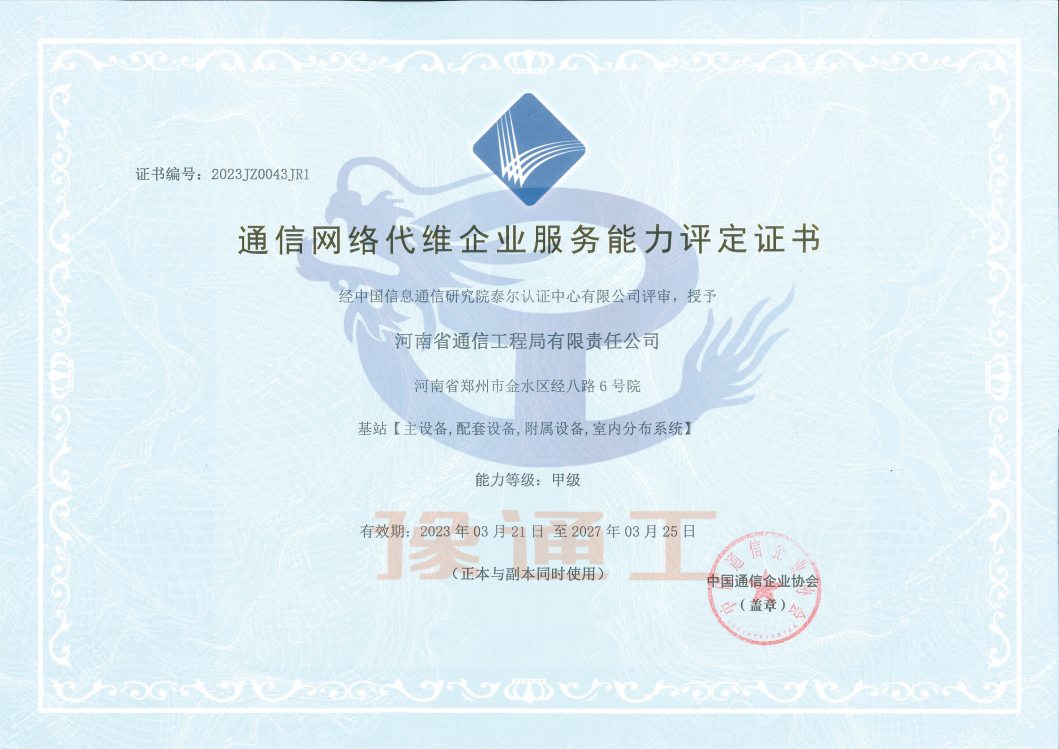 通信網(wǎng)絡代維裝維一體化專業(yè)甲級